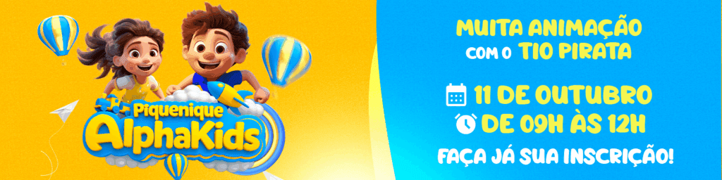 O nosso evento de Dia das Crianças foi simplesmente inesquecível! O Piquenique Alpha Kids reuniu sorrisos, alegria e muita diversão em um dia repleto de atividades ao ar livre. As crianças aproveitaram momentos especiais, que se encantaram com as brincadeiras, as guloseimas e a animação contagiante do Tio Pirata.